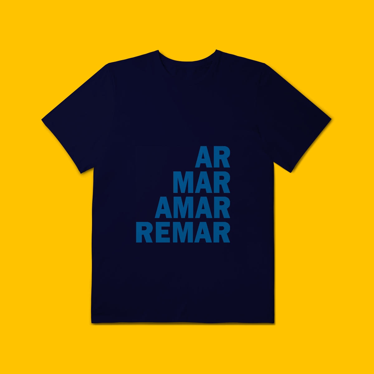 Estampa criada em 2022 focada na construção poética de frases que se interligam com a atividade que envolve a ação de REMAR. Nela estão todas as possíveis relaçoes existentes entre os meios naturias onde elas ocorrem, o amor e a paixão pela prática do remo, e o ato em si: REMAR.
