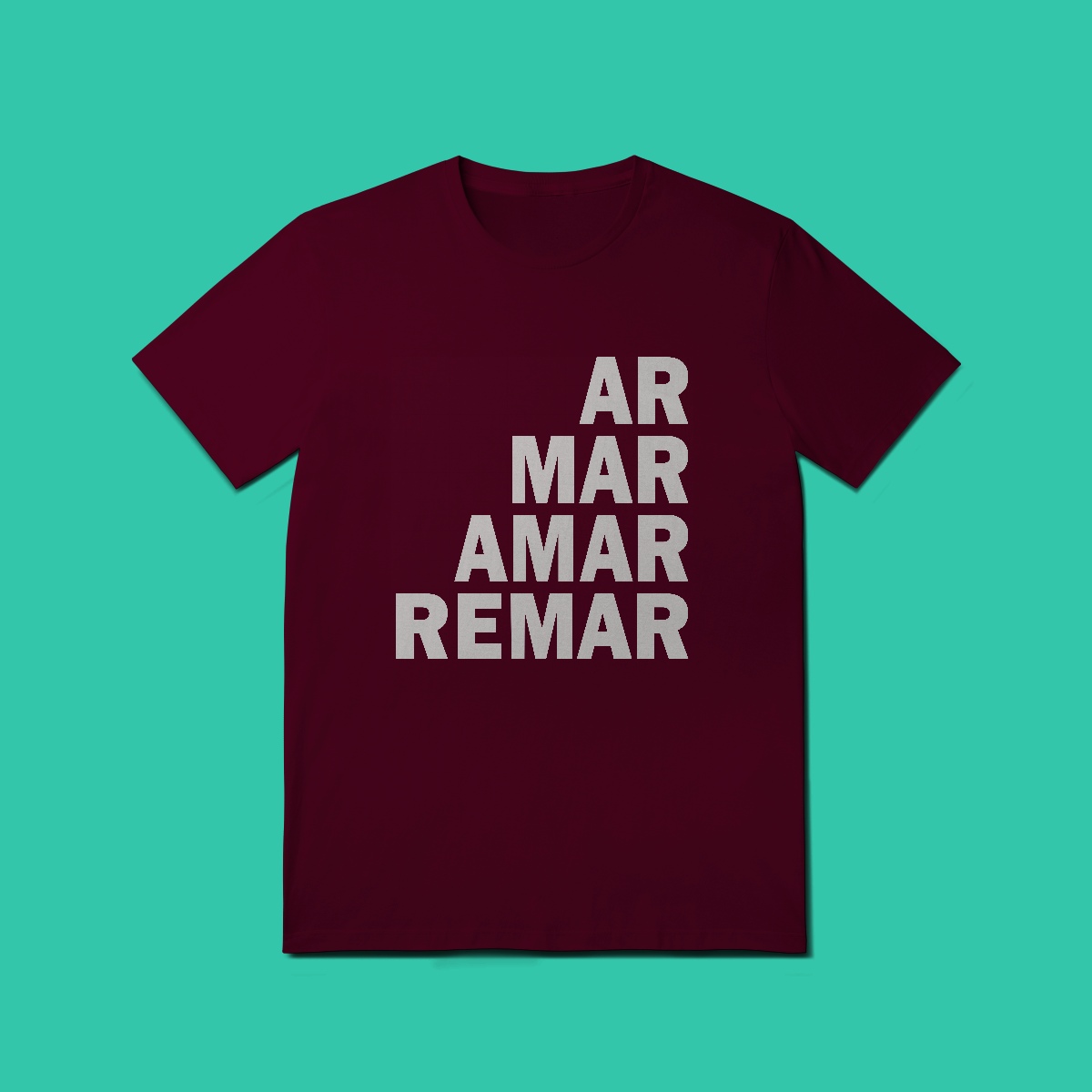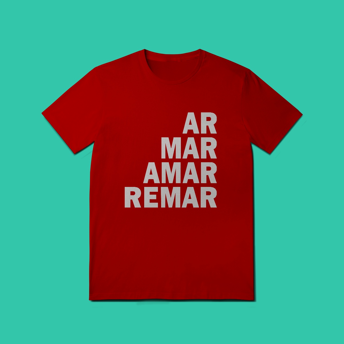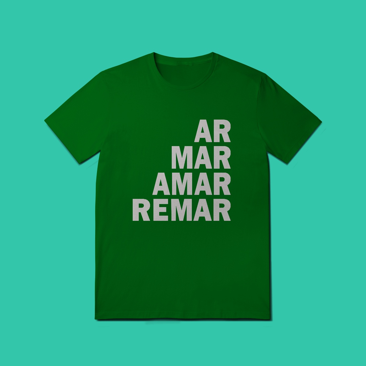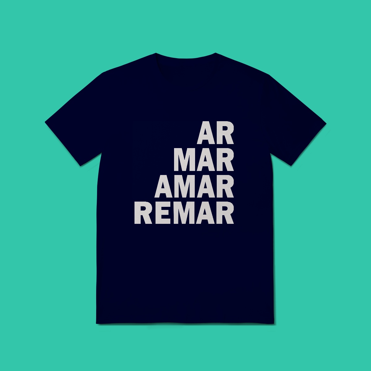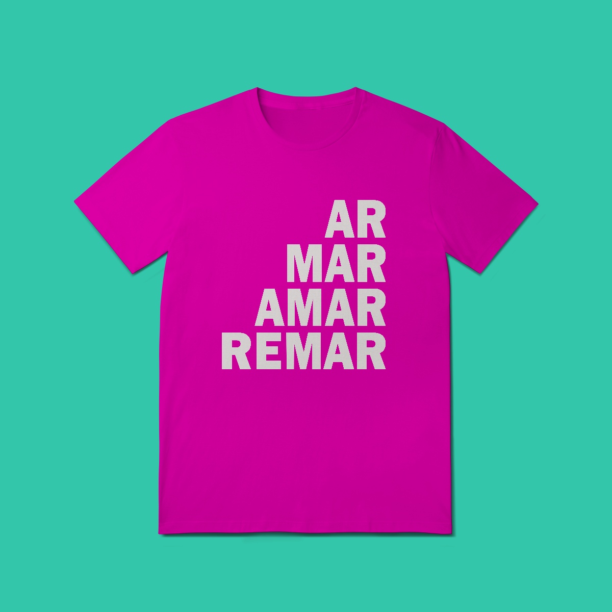 Estampa criada em 2022 focada na construção poética de frases que se interligam com a atividade que envolve a ação de REMAR. Nela estão todas as possíveis relaçoes existentes entre os meios naturias onde elas ocorrem, o amor e a paixão pela prática do remo, e o ato em si: REMAR.