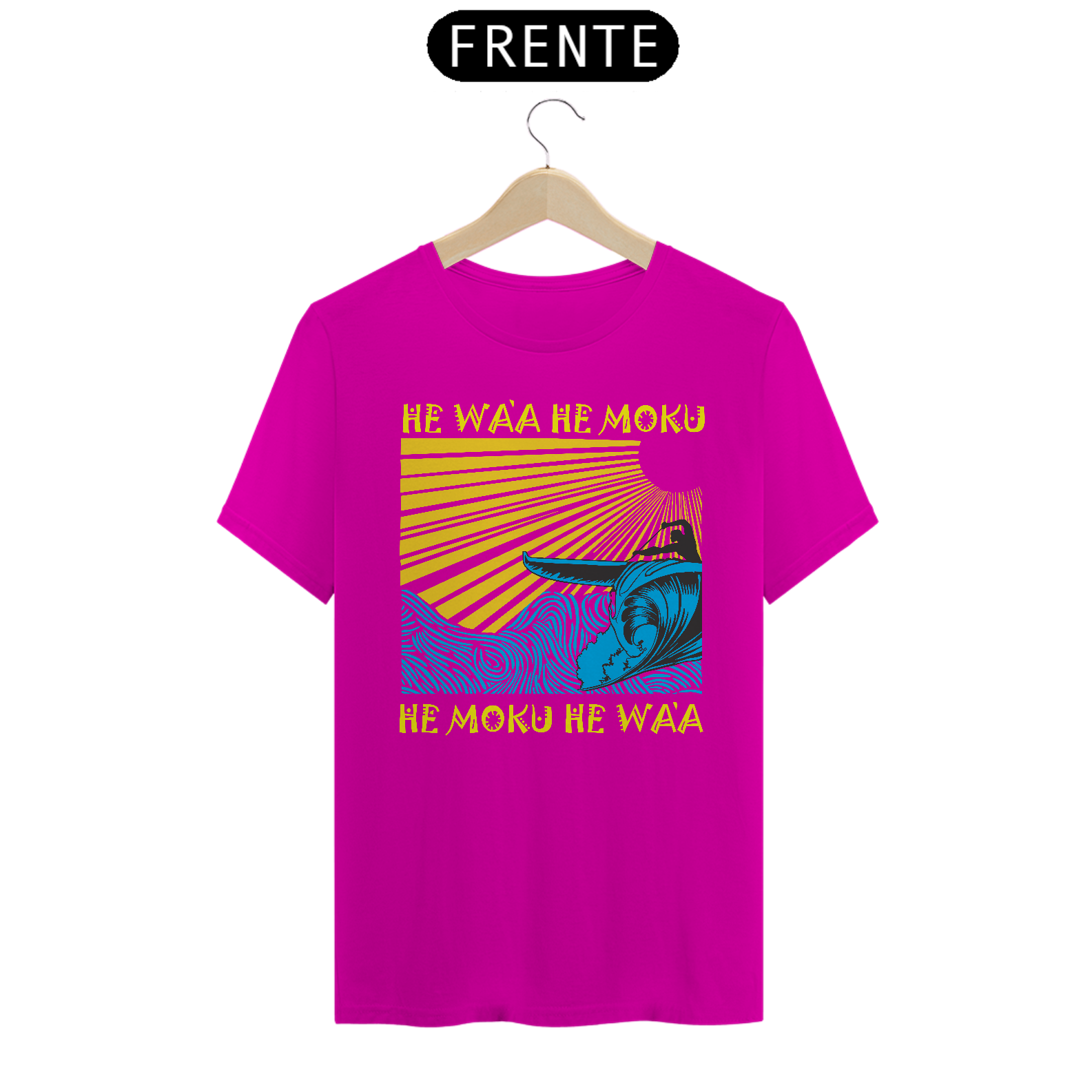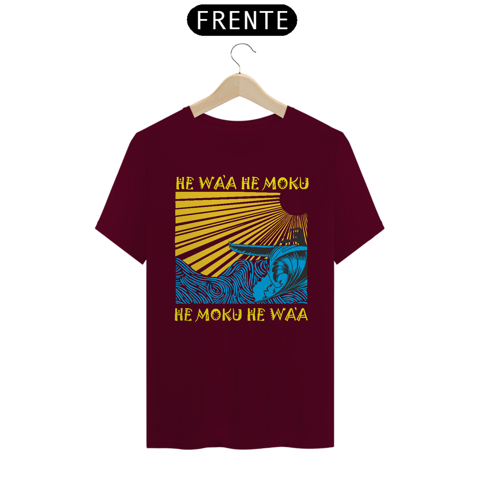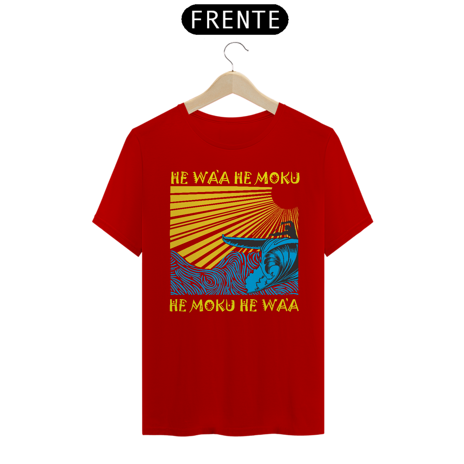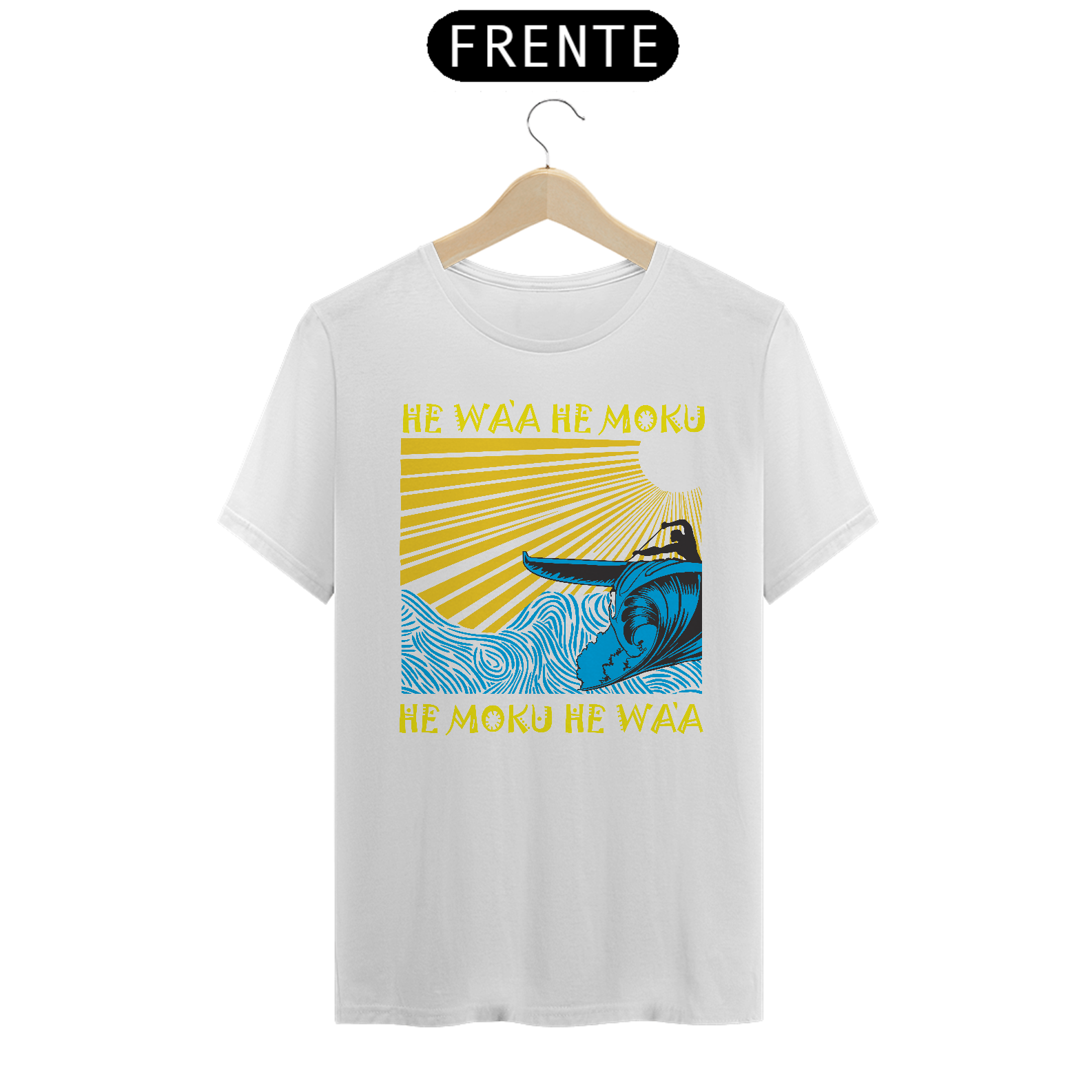 HE WA'A HE MOKU, HE MOKU HE WA'A  é uma das estampas autorais voltado para a fllosofia que envolve os praticantes da canoa havaiana. "Va'a" (ou "Wa'a" em havaiano) refere-se à canoa polinésia, uma embarcação tradicional usada pelos povos da Polinésia - há mais de 3 mil anos - que serviam para transporte, pesca e esportes. "Va'a" é um termo geral que pode se referir a canoas de casco simples ou de casco duplo.