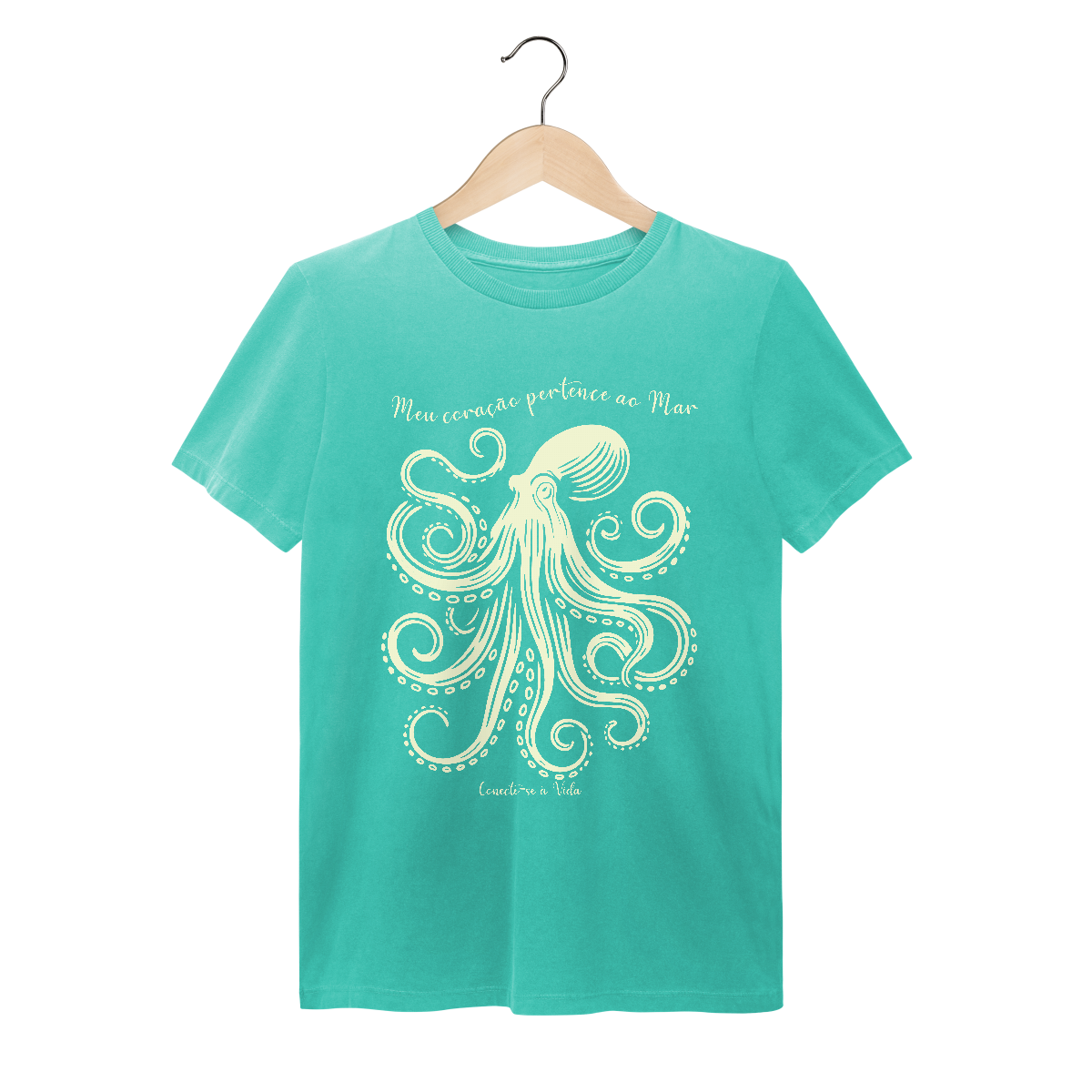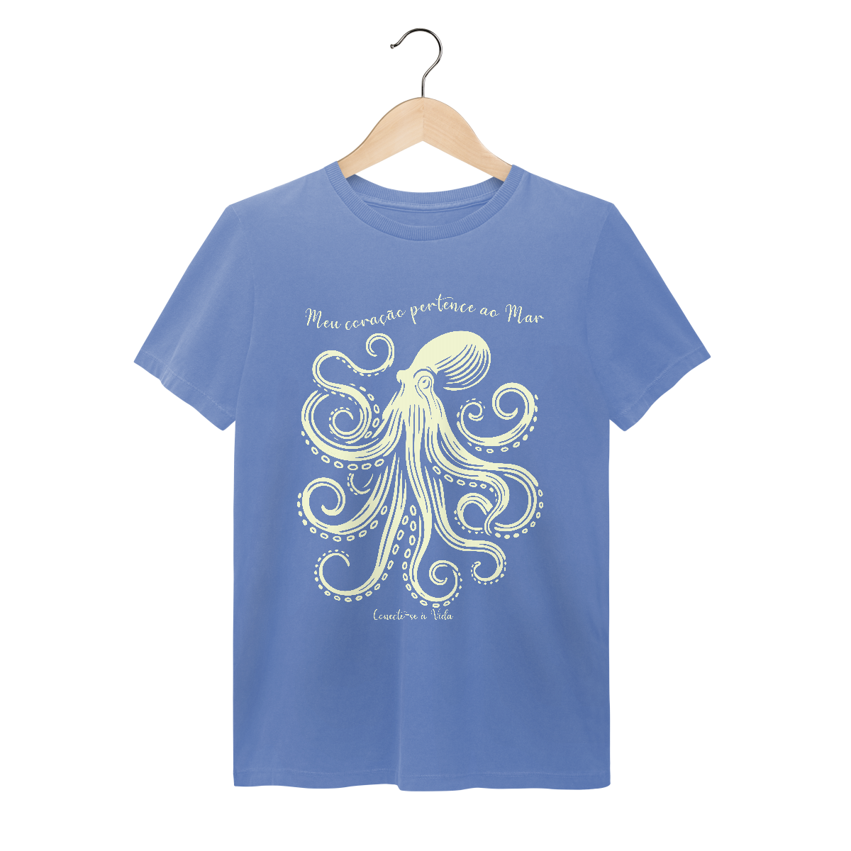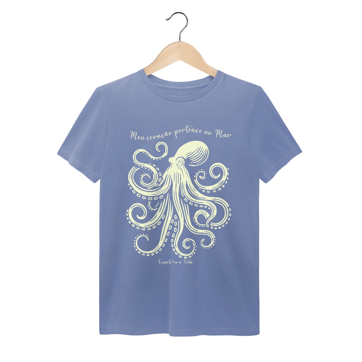 Na mesma linha das estampas da linha Conecte-se à Vida, das estampas da baleia Jubarte, da Manta Ray e da Tartaruga; e da estampa Meu Rio, Meu Mar, temos a estampa da Água-Viva. E agora anunciamos a estampa  Octopus, para encerrar a relação do ser humano com o mar.