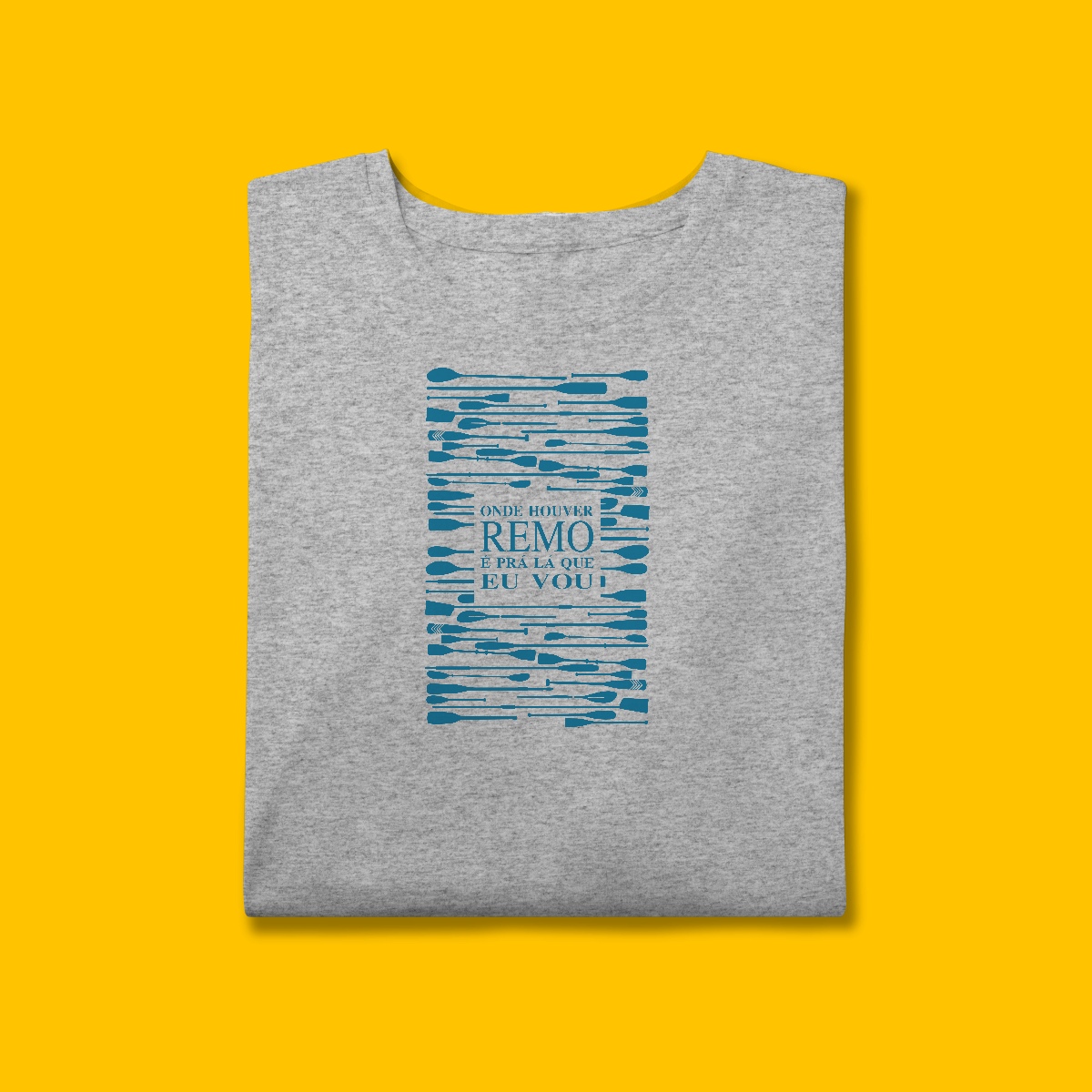 Originalmente surgiu em 2021, mas os remos eram somente os do remo olímpico. Depois quando nos envolvemos com os outros esportes, a estampa incorporou os demais remos de cada categoria. Assim, o forte da estampa era mais a frase, pois descobrimos que muitos remadores também atuavam em outras categorias, inclusive em mais de duas.